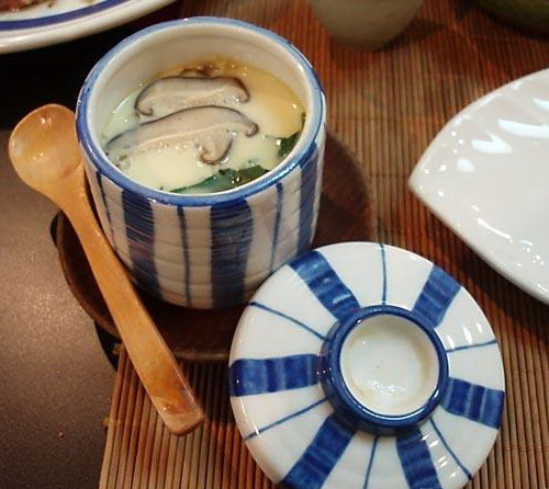 This delicious, silky custard can be served as a side dish with grilled and deep fried foods, or as a main dish all by itself. The secret to making this dish is in allowing it to steam until the egg just barely sets, giving the custard a silky, liquid quality.