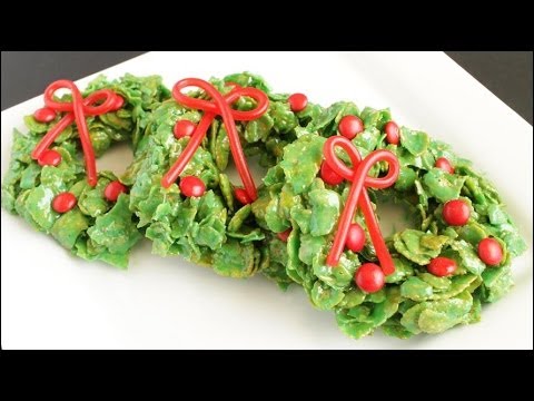 In a large pan over medium heat, melt the butter or margarine. Add mini marshmallows and stir constantly until melted. Once melted, turn off heat and add in vanilla extract and food coloring. Stir to incorporate. Add in cornflakes and carefully mix until well combined. Drop by large spoonfuls onto a silicone baking mat or waxed paper or foil that’s heavily sprayed with nonstick spray. Wet your fingers and shape into wreaths with a hole in the center. Add M&M’s or red hots. Let cool completely and store in an airtight container separated by layers of waxed paper to prevent them from sticking to each other. Makes (8) 3-1/2″ wreath treats. Enjoy!!