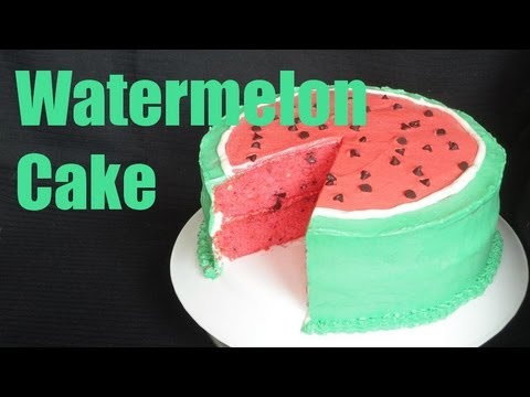 Learn how to make and decorate this awesome watermelon cake! Watermelon flavored cake with chocolate chip ‘seeds’ and decorated with buttercream frosting. Perfect for a summer get together, bbq or picnic!