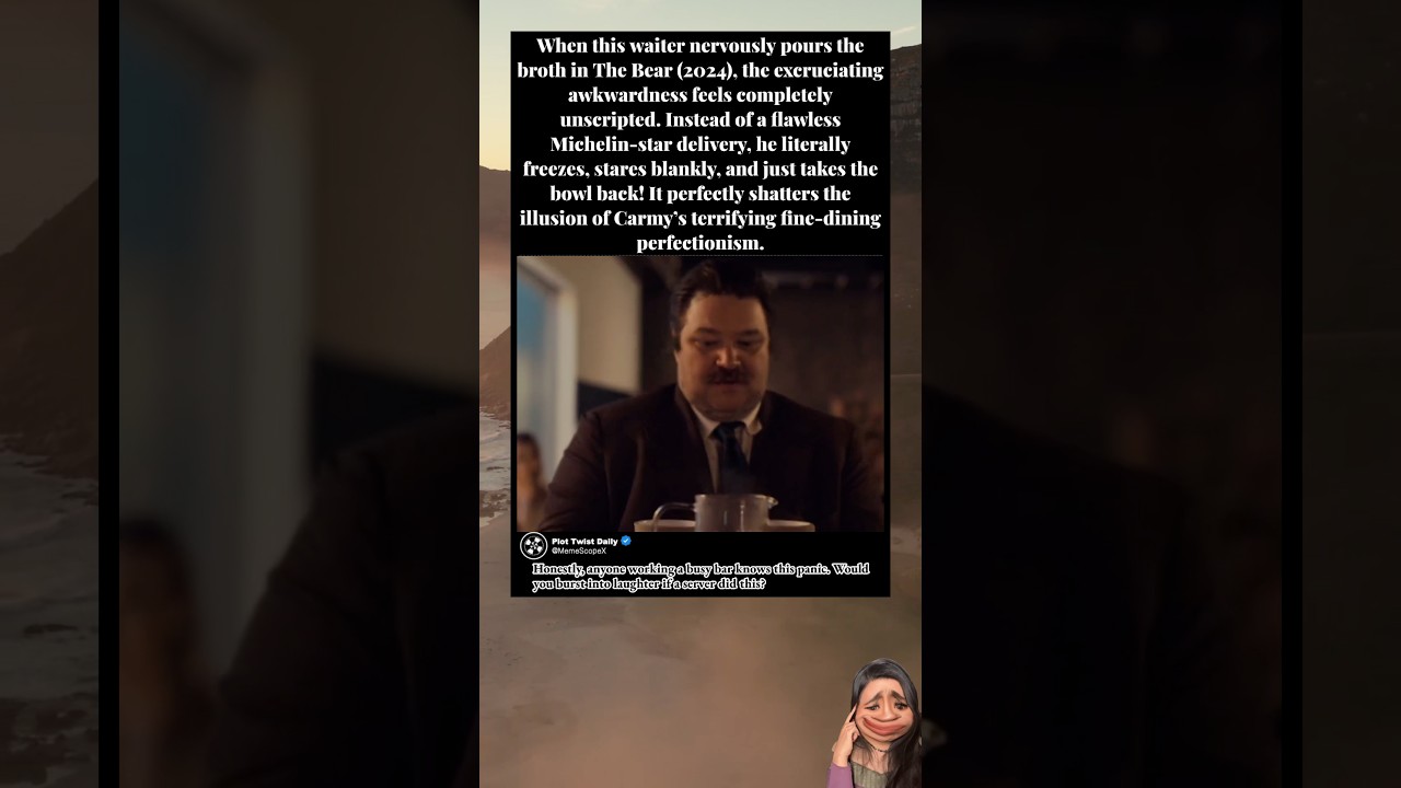 When the waiter freezes while pouring broth in The Bear Season 3, the awkwardness feels completely real because it was unscripted. It perfectly shatters the illusion of perfection Carmy is trying so hard to maintain.#TheBear #TheBearSeason3 #FineDining #TVDetails #JeremyAllenWhite