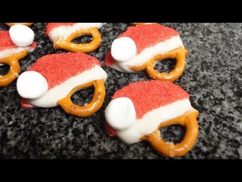 Learn how to make Santa hats from pretzels! These are super easy, inexpensive and relatively quick. Perfect addition to your holiday treat platter!