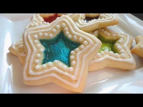 How to make stained glass cookies! Without crushing candy. These are super easy to make, make great treats for kids and you can even poke a hole in a point and hang them from your tree. Something to keep in mind…the cookie is delicious, the candy is delicious but together, they are weird to eat. Another note: Jolly Ranchers make a clear, shiny center and LifeSavers produce a dull and opaque center. Just something to keep in mind.