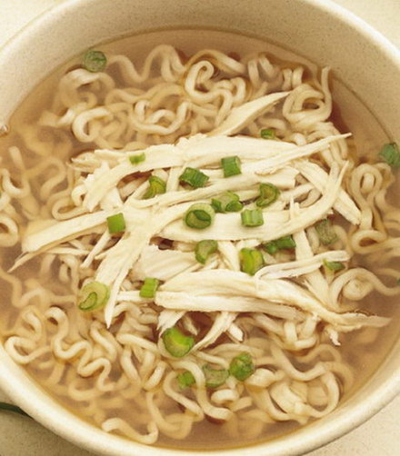 *Instead of chicken, try adding spinach leaves, mushrooms, or bean sprouts to this flavorful broth. Just barely cook spinach in boiling water for 30 to 40 seconds, or lightly stir-fry mushrooms or bean sprouts in a little vegetable oil.