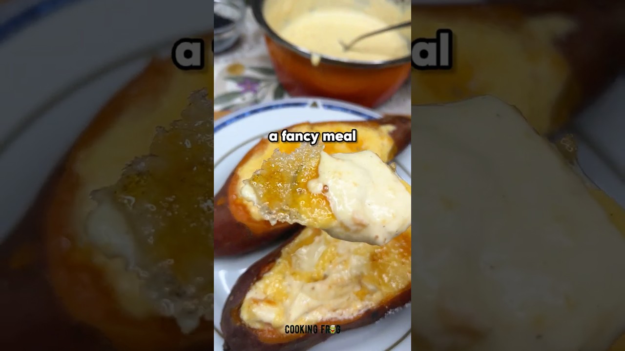 Broke date-night dessert: Japanese sweet potato crème brûlée. Fluffy roasted satsumaimo + vanilla custard + crackly brûléed sugar top. Full recipe: https://cookingfrog.com/sweet-potato-creme-brulee/