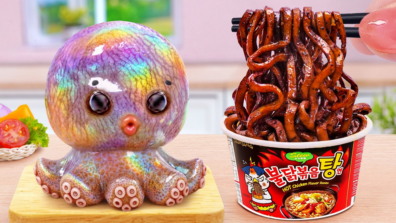 Recipes for Seafood Lovers ๐Ÿ™ Crispy Fried Octopus with Black Bean Noodles ๐Ÿœ Tina Mini Cooking
