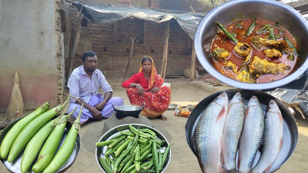 Parents cooking FISH CURRY with Ladyfingers|Egg brinjal curry cooking|Special food of the village