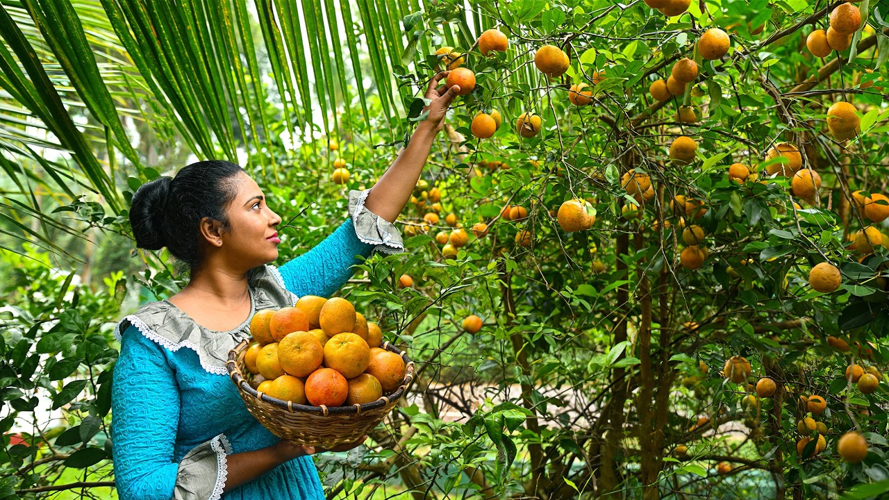 13. A delightful farm to table journey harvesting golden oranges and transforming them into a heavenly chocolate orange cake with soothing ASMR cooking moments 🍊🍰✨