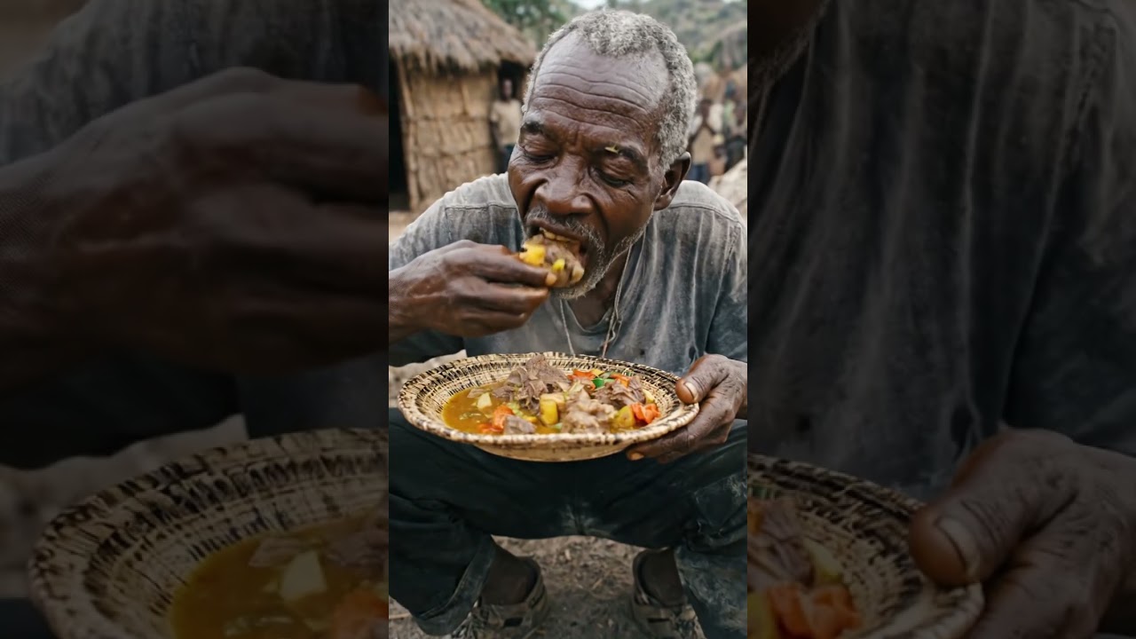 This short captures Hadzabe-inspired preparation, food sharing, and real tribal eating moments with natural energy.