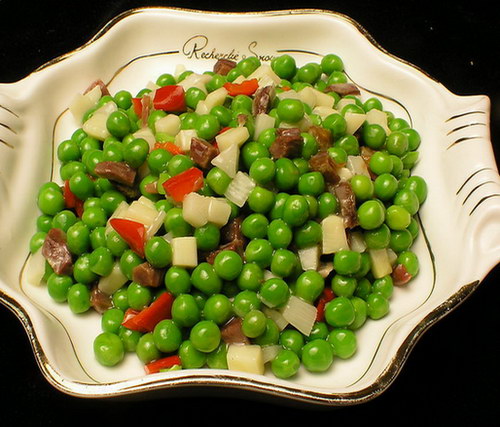Fresh peas are often eaten boiled and flavored with butter and/or spearmint as a side dish vegetable. Salt and pepper are also commonly added to peas when served. Fresh peas are also used in pot pies, salads and casseroles. Pod peas (particularly sweet cultivars called mange tout and sugar peas, or the flatter “snow peas,” called hé lán dòu, 荷兰豆 in Chinese) are used in stir-fried dishes, particularly those in American Chinese cuisine. Pea pods do not keep well once picked, and if not used quickly are best preserved by drying, canning or freezing within a few hours of harvest.