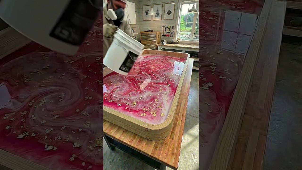 Watch the oddly satisfying step-by-step process of pouring a custom pink and white epoxy resin river table. From mixing the vibrant pink resin, adding luxurious gold leaf flakes, and the final clear epoxy pour, to the stunning reveal in a modern luxury dining room. If you love satisfying DIY furniture projects and high-end home decor transformations, this resin art process is for you!