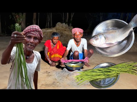 rural tribe GRANDMA cooking KATLA FISH wit BANANA curry and eating || tribe people DINNER recipes