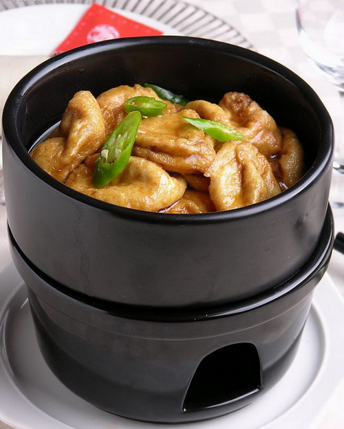 1. Slice the soybean curd into thin triangles. Slice the Chinese ham and cabbage.
