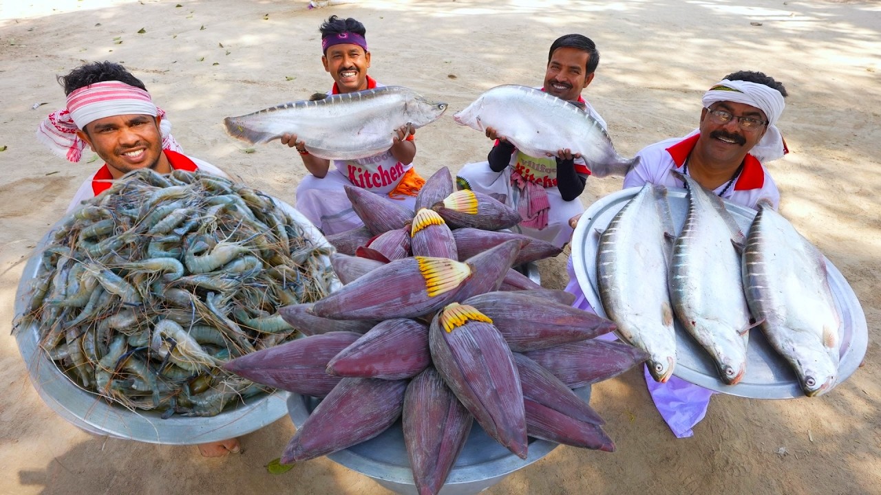 30kg Big Chital fish & Bengali famous Mocha Chingri recipe cooking for village people