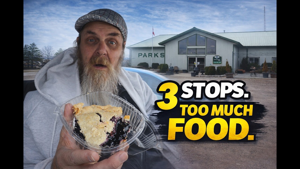 Today I hit three food stops around Chatham, Ontario — and each one tried harder than the last to take me out. Started with a sub sandwich at Kent Bridge Country Market, rolled straight into a mountain of diner food at Shady Pine, and finished at Park’s Blueberries where the baked goods do not play around.