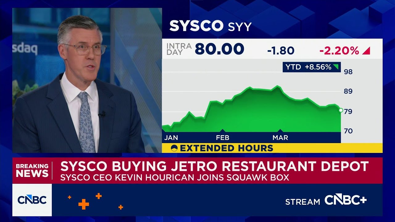 Sysco chairman and CEO Kevin Hourican joins ‘Squawk Box’ to discuss details of the $29 billion deal to acquire Jetro Restaurant Depot, company growth outlook, and more.
