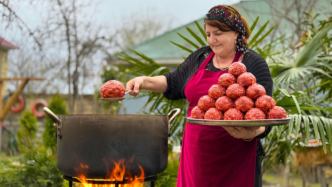 In this video, grandma prepares Kofta Bozbash using time-honored techniques passed down through generations. Cooked over an open fire in a peaceful village setting, this recipe shows the true essence of Azerbaijani cuisine.