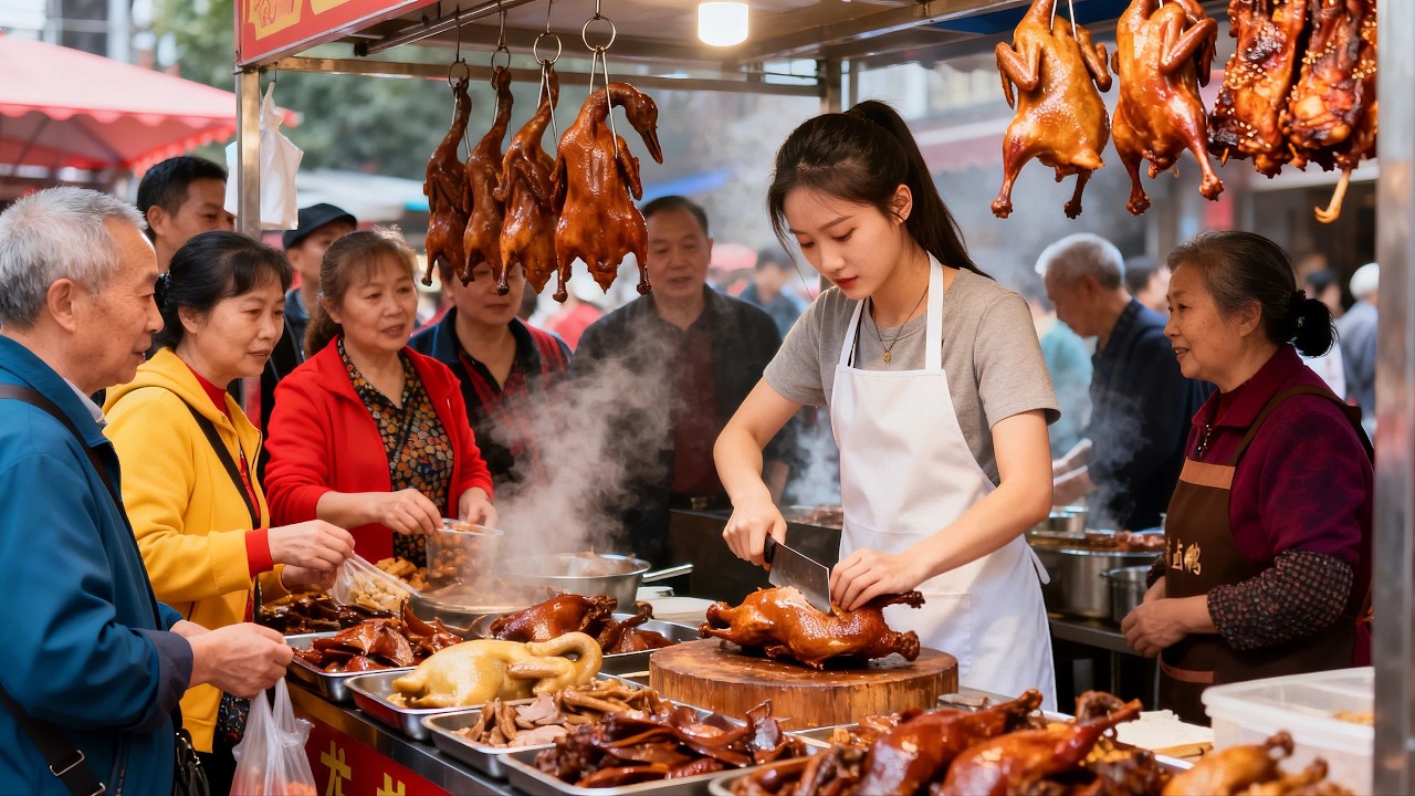 From spicy chili-loaded chicken to rich braised goose and refreshing ice jelly, this market offers a full range of Chongqing flavors — bold, intense, and deeply rooted in local food culture.