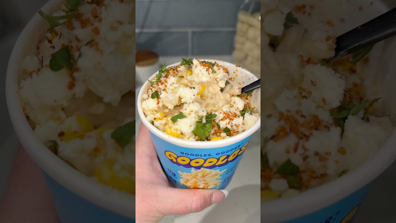 In a small bowl, mix corn, mayonnaise, lime juice, and chili powder to create a quick corn crema. Prepare Goodles mac cup according to package instructions. Once ready, spoon the corn crema over the mac and gently swirl to combine. Finish with a sprinkle of cotija cheese, tajΓn seasoning, and fresh cilantro. Enjoy! π