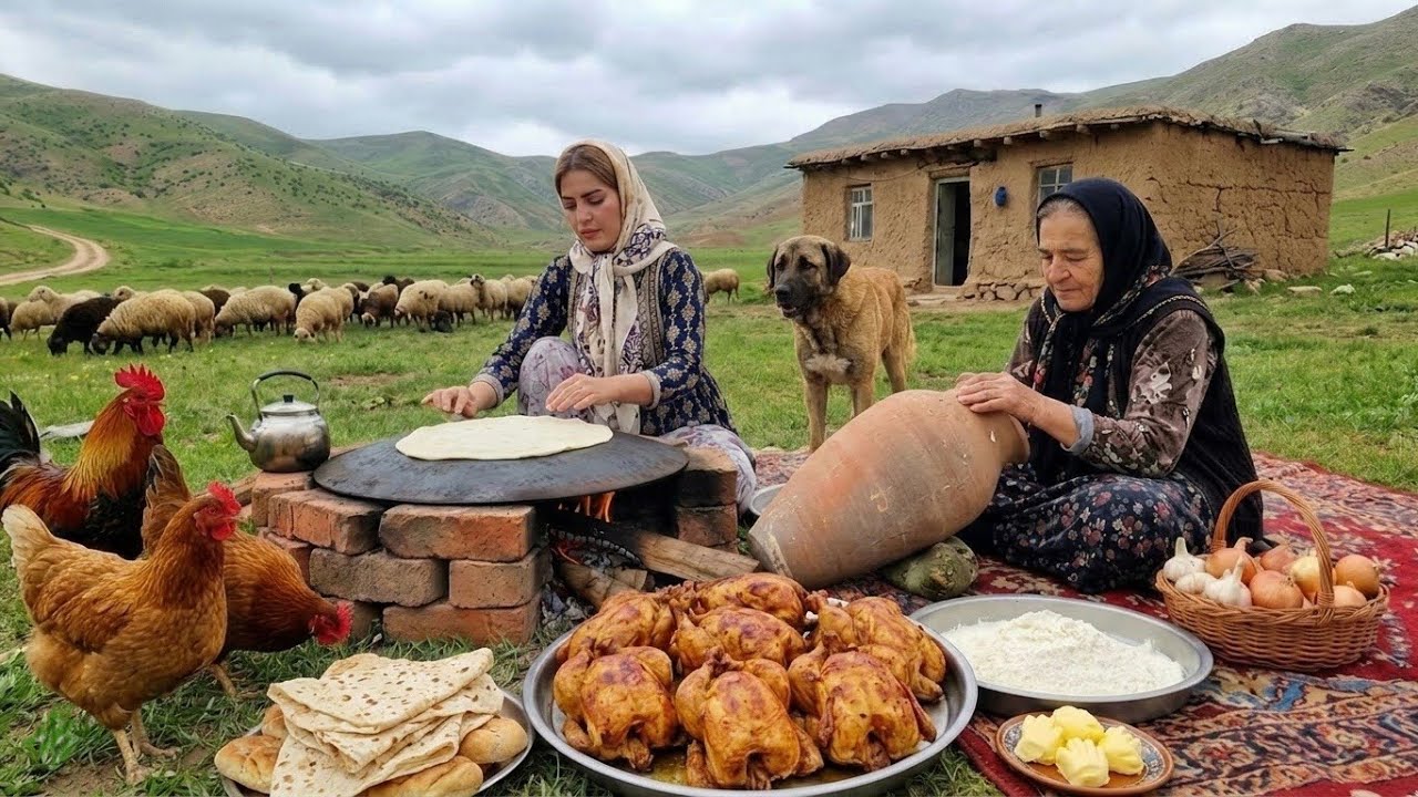 Iran Nomadic Life Mix : Baking Bread, Milking Cows & Cooking Chicken Biryani