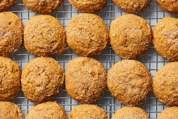 - In a medium bowl, whisk together the flour, ginger, cinnamon, nutmeg, baking powder, baking soda and kosher salt.