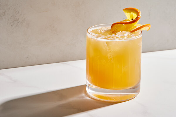 - In a shaker, combine the Calvados, amaro and orange juice. Add ice, cover and shake until well chilled. Fill a rocks glass with ice. Strain the cocktail into the glass and top with beer. Add the orange wheel and serve.