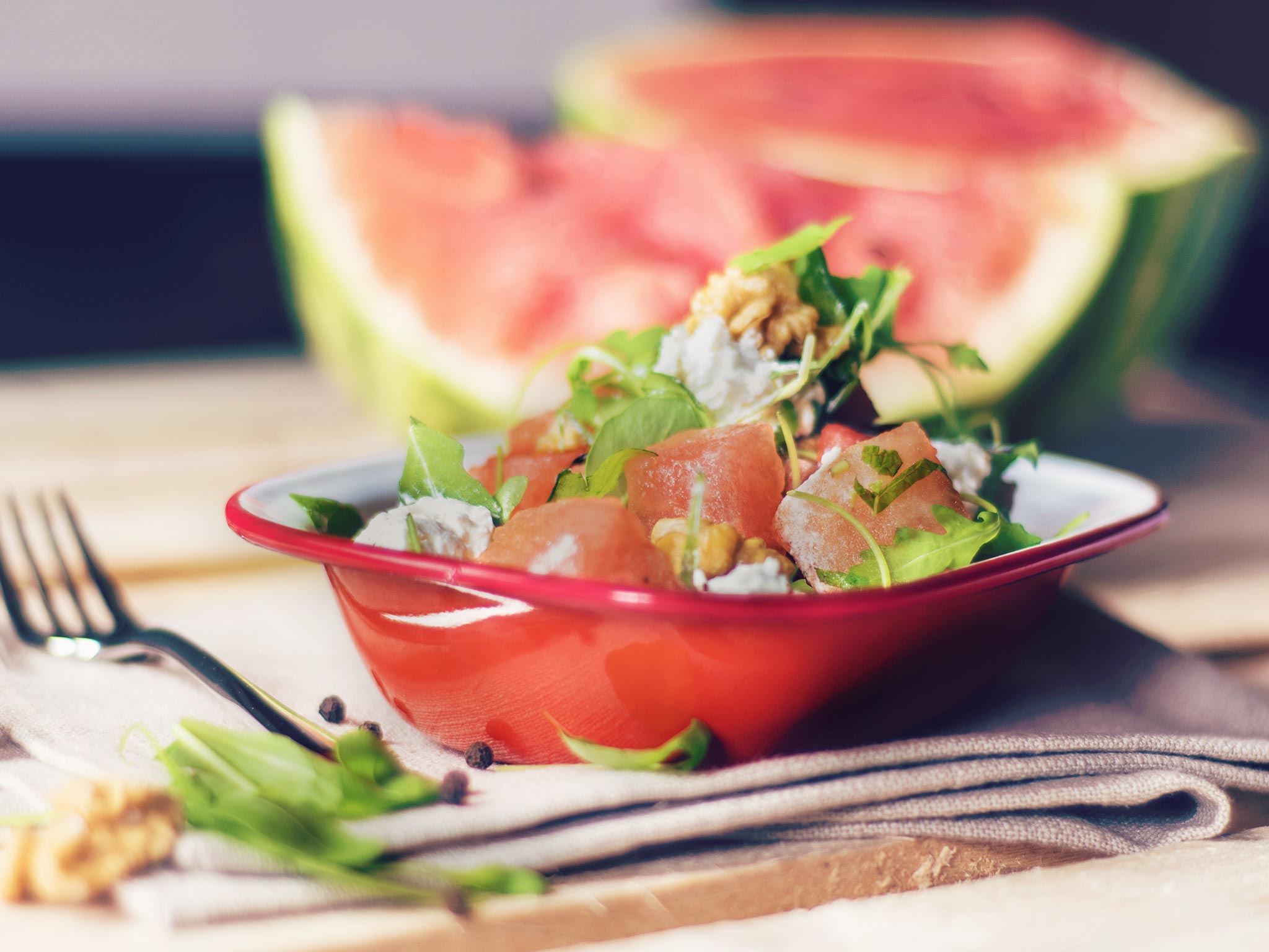 Juice the lime. Slice mint leaves into fine strips. Cut watermelon into bite-sized pieces.