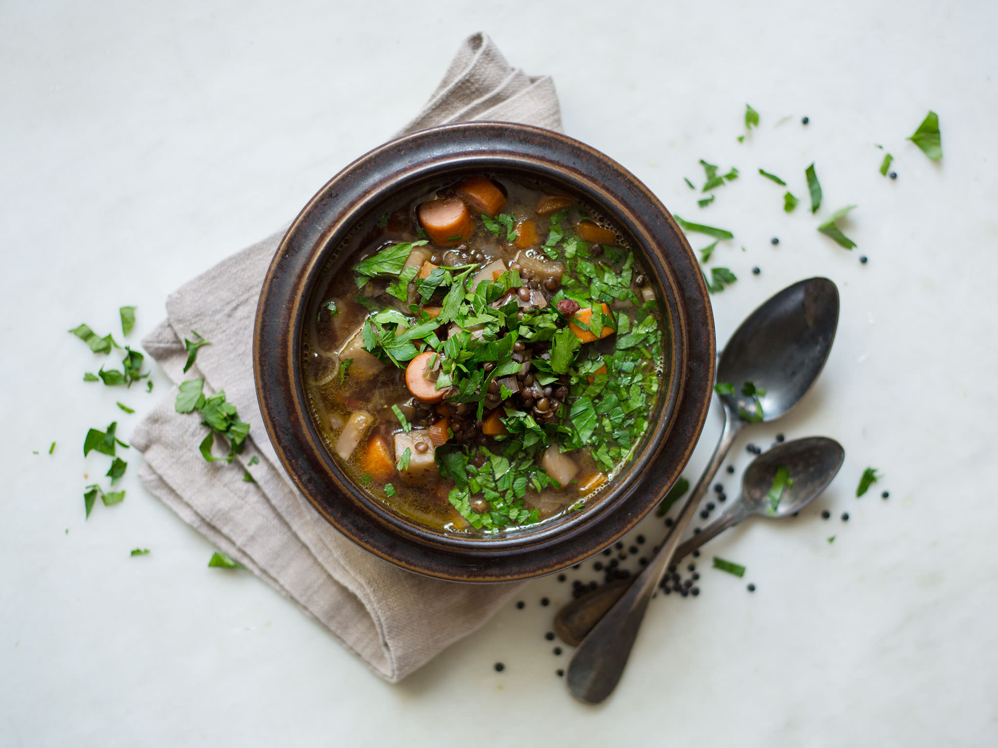 Lentil stew with sausages