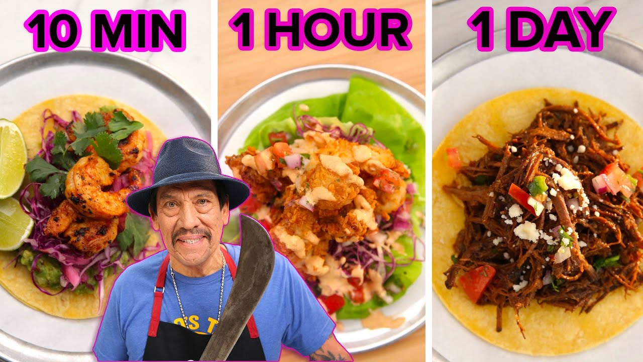 Special guest Danny Trejo stops by Tasty to show us three incredible taco recipes! These are all worth your time whether you have 10 minutes, 1 hour, or a full day!
