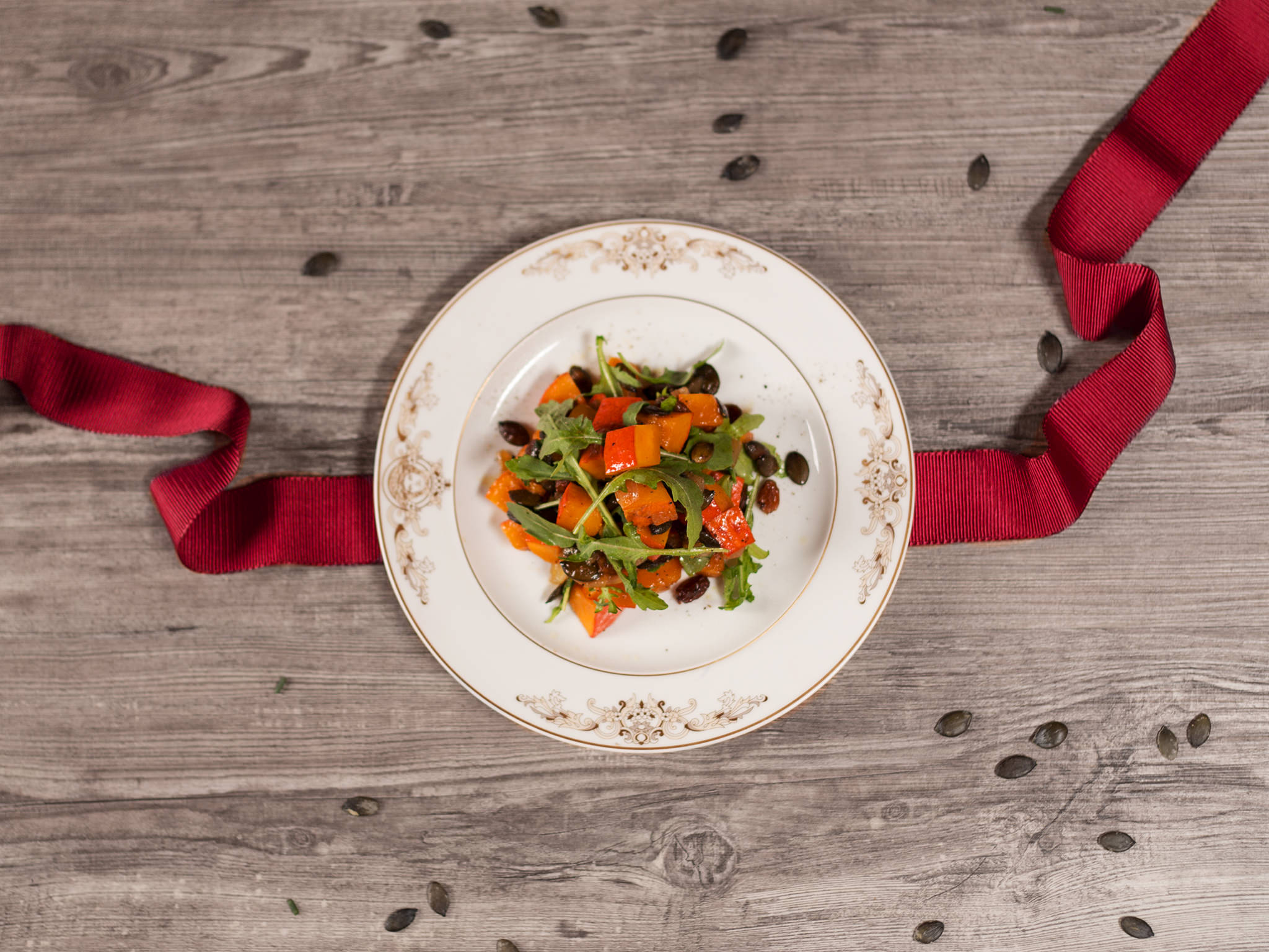 40 g pumpkin seeds / 40 g rocket / pumpkin seed oil for serving