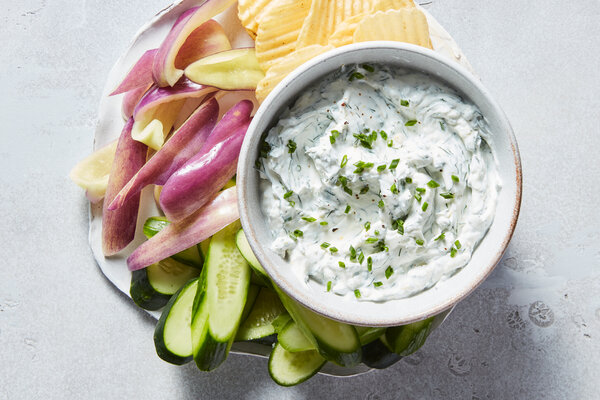 • Potato chips, Persian cucumbers or other crudités, for serving
