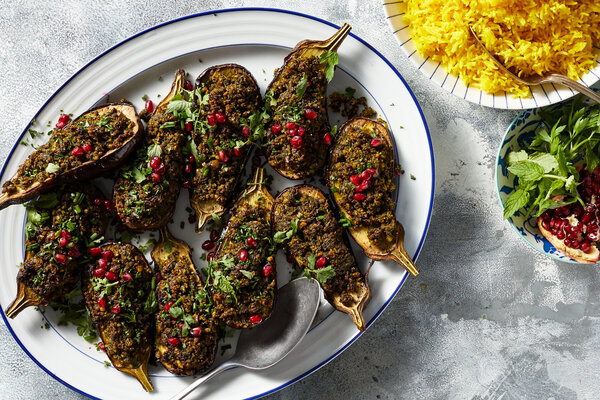 - Garnish the eggplant with more chopped herbs, barberries, sprouts or pomegranate seeds. If eating as a main, serve with plain or turmeric basmati rice.