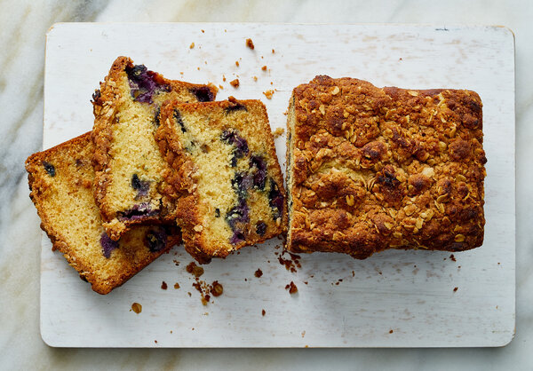 - Pour half of the batter into the prepared pan and spread it into an even layer. Crumble half of the streusel on top in an even layer. Pour the remaining batter into the loaf pan, spread into an even layer and crumble the remaining streusel on top. The loaf pan will be just over 3/4 full. Place it on a parchment-lined baking sheet.