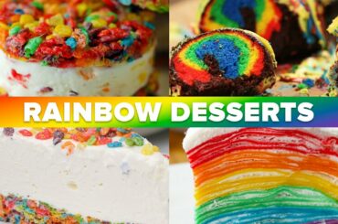 0:00 Intro 0:05 Rainbow Ice Cream Sandwich 1:40 Chocolate Rainbow Surprise Box Cake 2:40 Rainbow Cereal Cheesecake 3:58 Rainbow Crepe…