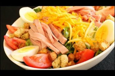 Learn how to make this classic chef’s salad! Leaf lettuce topped with ham, turkey, cheese, tomatoes, hard boiled eggs and…