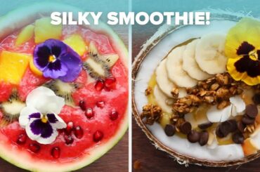 00:00 Intro 00:10 Moringa Smoothie 00:36 Watermelon Smoothie Bowl 00:51 Banana Berry Smoothie Bowl 01:28 Tropical Coconut Smoothie Bowl 01:42…