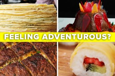 00:00 Intro 00:10 Fresh Fruit Sushi 01:03 Monte Cristo Sliders 03:20 100-Layer Giant Crepe 07:03 Volcano Cake 10:21 Giant Cheese…