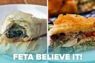 00:00 Intro 00:10 Spinach, Mushroom, And Feta Zucchini-Wrapped Quiche 00:43 Feta-stuffed Falafel Burgers 01:28 Greek Spinach Pies (Spanakopita) 02:36 Chicken…